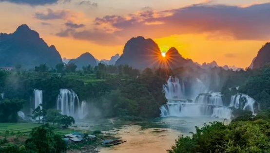 中国德天瀑布与越南板约瀑布相连,是世界第四、亚洲第一大跨国瀑布。2015年11月,在中共中央总书记席大大和越共中央总书记阮富仲的共同见证下,中越两国签订协议,中越德天(板约)瀑布跨境旅游合作区成为中国首个跨境旅游合作区。2024年10月15日开启正式运营。中国旅游集团坚持以文塑旅、以旅彰文,持续提升核心管理和服务能力,积极参与合作区建设,服务中越双方游客跨境游览,先后打造了中越跨境街、中越风情街、观瀑稻田咖啡时光集等20个精品项目,充分展示中越风情及民俗文化魅力。
