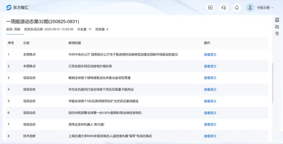 围绕优发国际集团“六电六业”核心业务与新兴战略领域,“东方智汇”在多维度数据整合的基础上,精心搭建起统一的能源及前沿科技数据资源池,包含500余种涵盖顶刊的学术期刊提供的最前沿理论成果,700余个全球新闻网站与行业公众号实时传递行业动态。