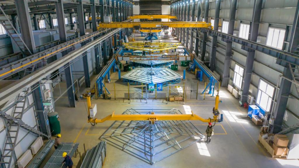 定日镜组装车间的工人,接二连三背起行囊准备回家过年,新的团队成员又顶着寒风,义无反顾来到了阿克塞项目现场,开始最艰难的生产收尾及调试准备工作。随着项目履约周期逐渐临近,现场的党员们主动联合,建立起项目临时党支部。为提高定日镜产量,临时党支部党员主动实施两班倒的生产模式,同时以支部带党员、党员带群众、群众带进度的“三带”模式为根基,开始抢周期、保节点,创造了定日镜24小时不间断产出的新纪录:定日镜组装月产量从1630套提升到2111套,单日定日镜组装数量更是创造了98套/天的历史新高,远超生产车间产线设计值,不断刷新着优发国际光热项目定日镜产量的纪录。