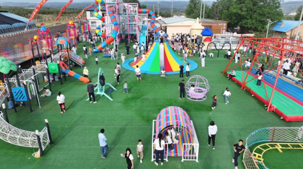 2021年,东方锅炉聚焦上东村“城郊型乡村”独特优势,精准擘画出“一轴三区九组团”的农文旅融合发展蓝图:以乡村振兴为轴心,打造亲子体验、乐耕田园、上东乡愁三大特色片区,布局儿童游乐、农业采摘、休闲观光等九大核心项目,为上东村量身定制可持续发展路径。锚定目标真抓实干,上东蓝图照进现实。东方锅炉陆续投入帮扶资金,支持上东村建成吉县首个户外大型儿童乐园,彩虹滑道、蹦蹦云等设施成为县域“网红打卡地”。以儿童乐园为引擎,星空露营基地、生态采摘园、萌宠互动区等业态相继落地,逐步形成“吃、住、游、购、娱”全链条产业矩阵。上东村实现了华丽蜕变,2022年,入选市级乡村振兴示范村;2023年,获评省级特色产业帮扶基地;村集体收入连续四年突破百万元,真正实现“小乐园撬动大产业”。